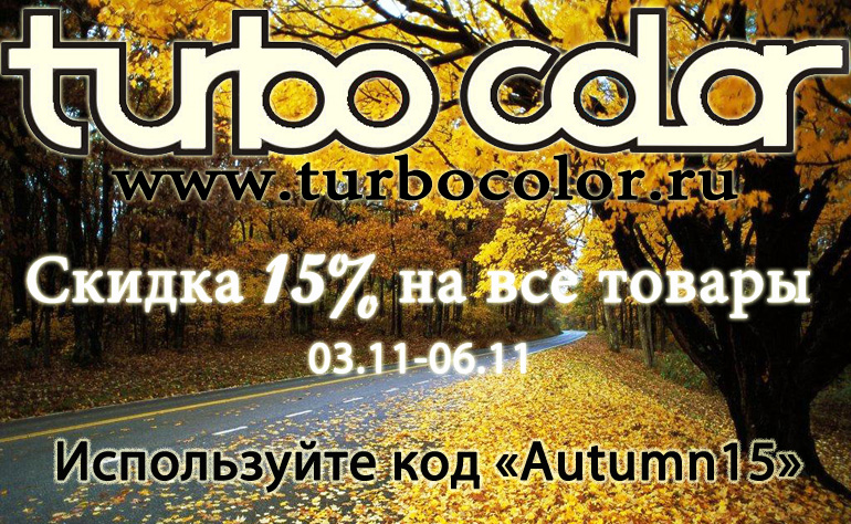 Друзья еще одна новость на сегодня. Все праздничные дни в магазине Turbocolor будет действовать скидка 15% на все товары. Используйте код скидку «Autumn15».Предлажение будет действительно с 03.11. по 06.11.